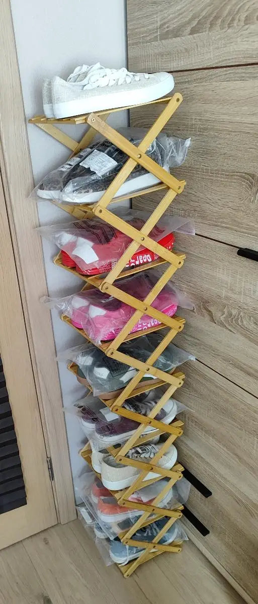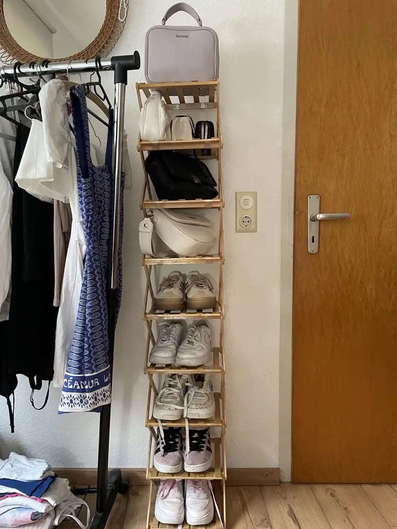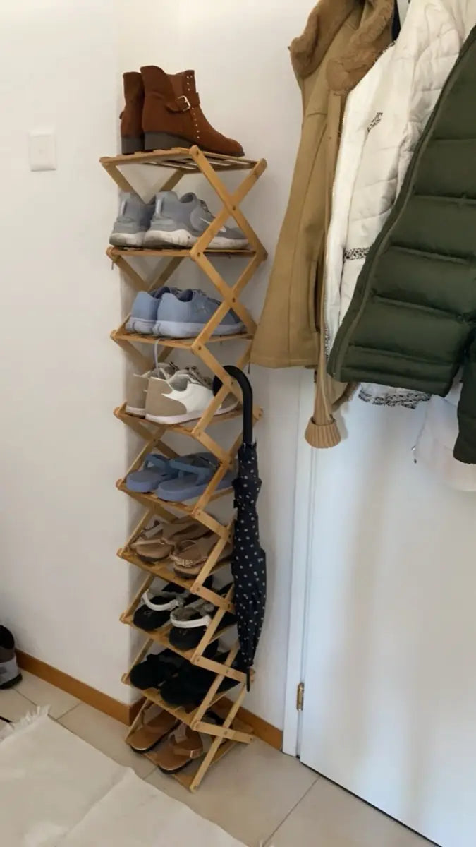 Étagère à chaussures pliable en bambou